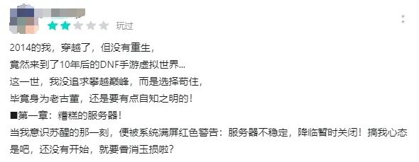 不过,这样一款现象级的产品也并非完美无缺,作为一款端游IP改编游戏,《DNF》手游也具有先天的劣势。一面是部分端游老玩家对IP还原上的体验指指点点,一面是新玩家面对各种门槛而难以入坑,这些痛点都持续考验着这款产品的后续运营能力。更不要说上线当天炸服近80分钟,相关联机功能持续不稳定(现已修复),都或多或少在产品的口碑上有所体现。