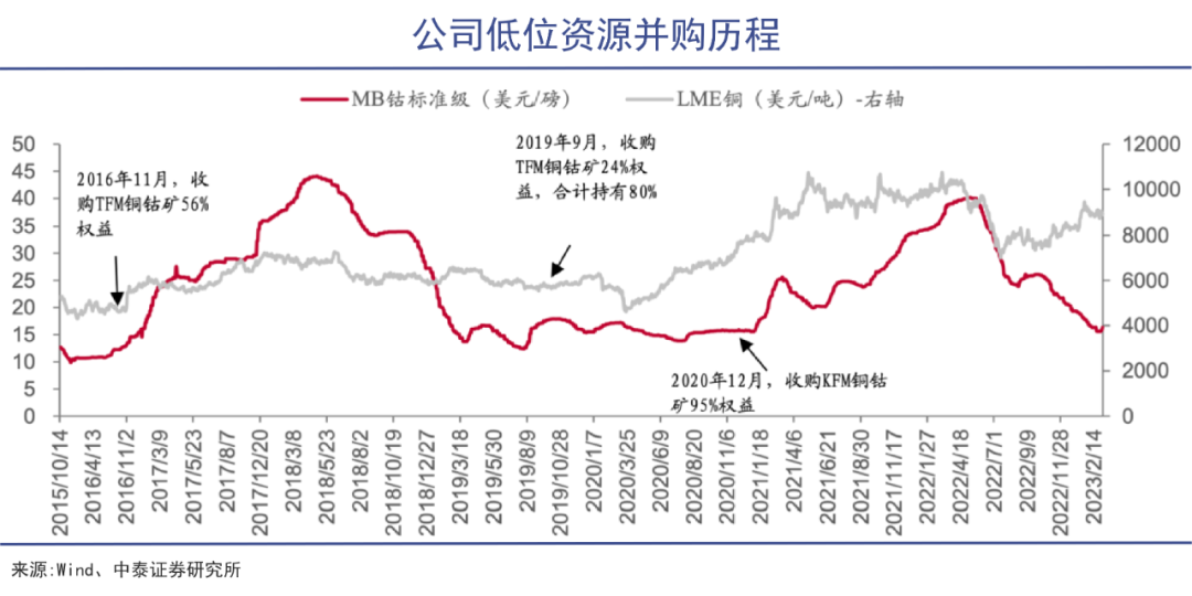 当年11月及2019年6月,又豪掷173.16亿元和4.7亿美元,收购刚果(金)TFM铜钴56%和24%的股权,合计持股80%,后者是全球储量最大、品位最高的铜钴矿之一,钴产量居全球第二。