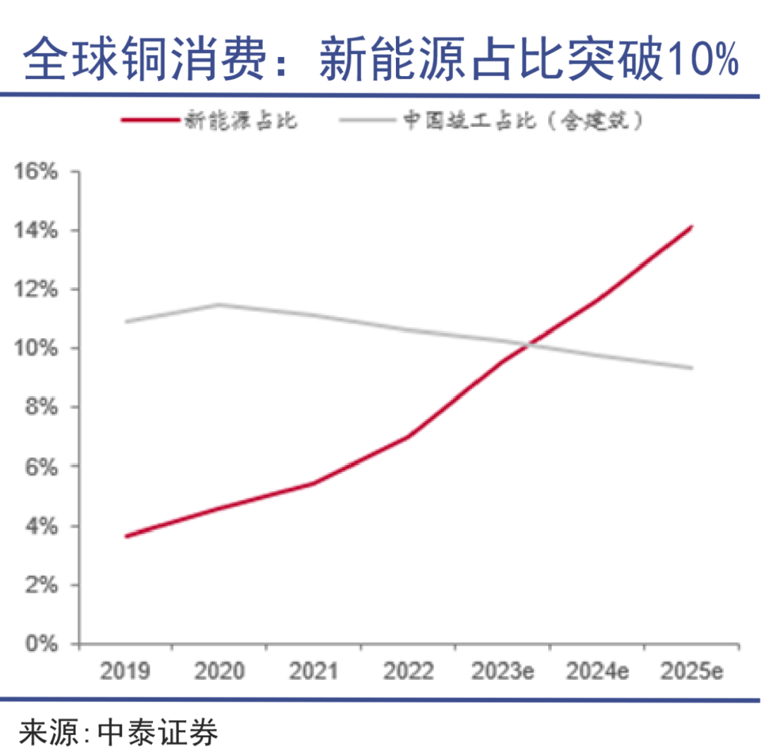 渡劫成功,而此时铜价又乘风而起,对洛阳钼业完成了“双向助攻”。近年来,由于电气化、智能化以及风光新能源汽车产业的发展,对铜的需求量大幅增加,有数据显示,目前新能源在全球铜消费量中的占比已经超过10%。