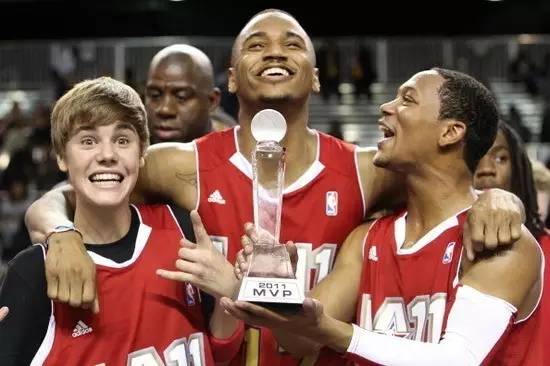 ▼17岁的贾斯汀·比伯获得2011年名人赛MVP
