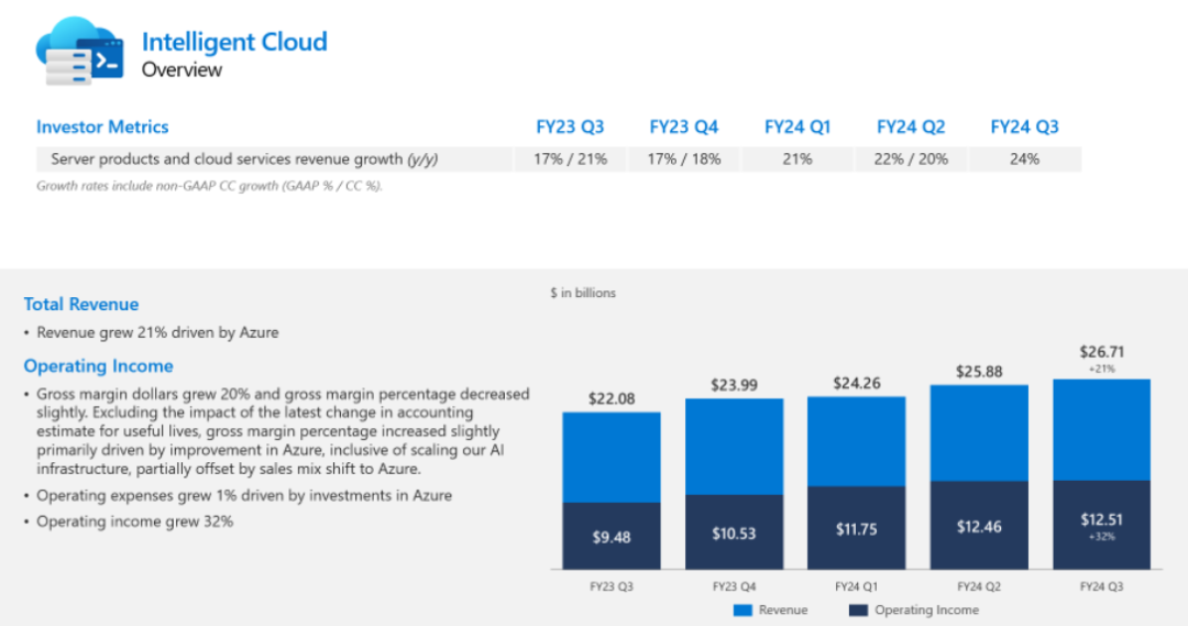 微软财报中智能云的增速表现