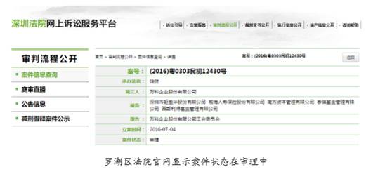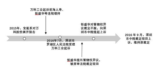 2016年,万科工会以钜盛华、前海人寿,以及宝能系增持资金所涉及的资管计划通道方南方资本、泰信基金、西部利德五家公司为被告,向深圳市罗湖区人民法院提起诉讼,以五被告股票交易过程中违反信息披露义务为由,请求确认五被告增持万科股份的行为无效。7月4日,罗湖区法院正式受理此案。