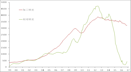 外部环境对于我国经济的影响主要体现在出口方面,今年中国的出口不容乐观。近两年来中国的出口都是负增长,且2016年中国出口在全球出口份额的占比首次出现了下降。从出口的明细项看,2016年出口降幅高达7.7%,虽然第四季度降幅收窄至5.2%;加工贸易的降幅继续扩大,2016年降幅达到10.2%(2015年下降9.6%);而非加工贸易2016年降幅达到6.4%,相对于2015年1.1%的正增长,更需关注。