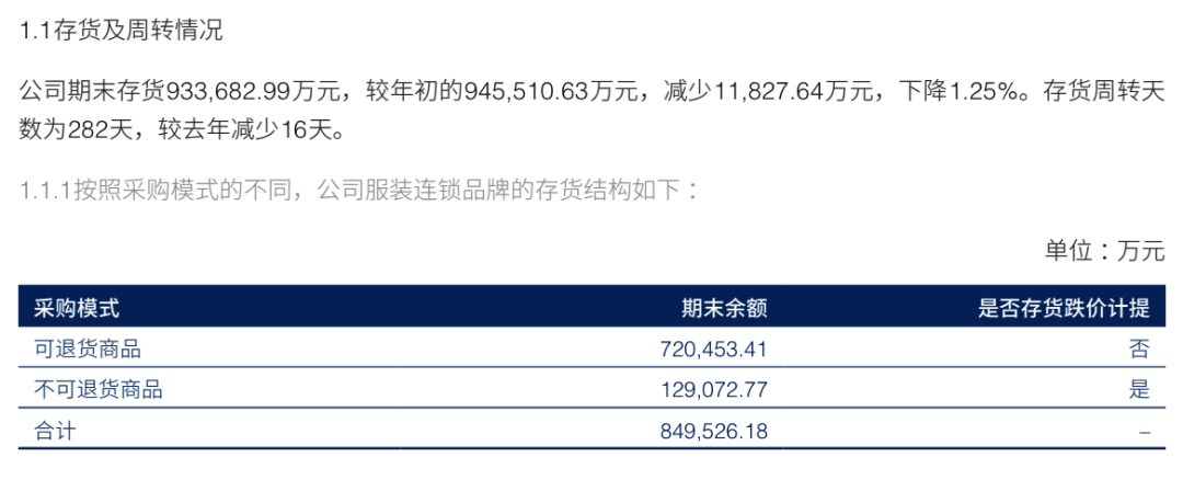 事实上,“可退货为主,不可退货为辅”的采购模式,不光削弱了海澜之家产品的竞争力,还因动销不畅让其背负了一定的存货压力。