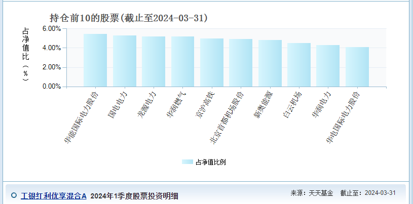 再如,上涨25.52%的工银红利优享混合A,持仓前10股票中,有5只电力股,2只燃气股,2只机场股,还有京沪高铁。都属于年度高分红股票,累计占比48.57%。