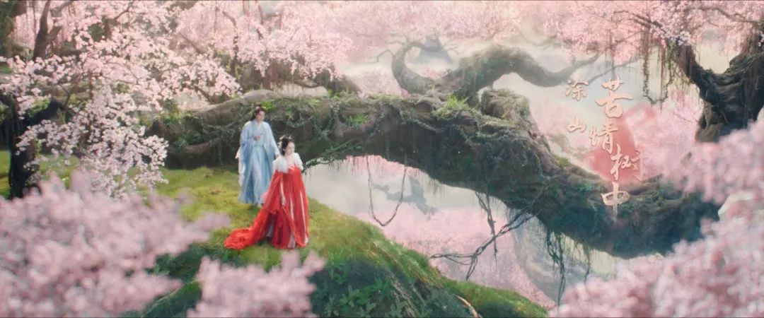 《狐妖小红娘月红篇》画面颜色浓墨重彩,多用红、粉、蓝、绿等较为鲜艳的颜色。尤其是在涂山的场景中,粉色、绿色被大面积地使用。