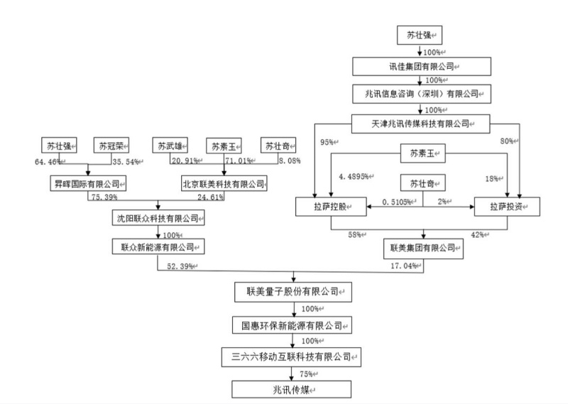 在本次股份转让之前,收购人三六六的控股股东为国惠环保新能源有限公司(以下简称“国惠新能源”),实际控制人为苏素玉、苏武雄、苏冠荣、苏壮强、苏壮奇五人。同时,兆讯传媒目前的控股股东为联美控股,实际控制人也是上述五人。