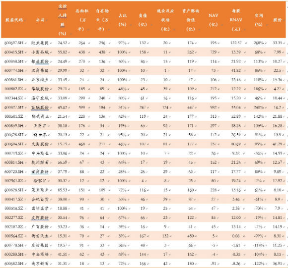 资产重估价值占优。百货业态大多拥有城市核心商圈的优质物业,且伴随地价增值资产重估价值不断提升;同时由于前期受电商压制,新型购物中心等新兴业态分流,出现财务数据表现欠佳。因此物业增值带来的资产升值得不到合理体现,公司市值通常被低估。