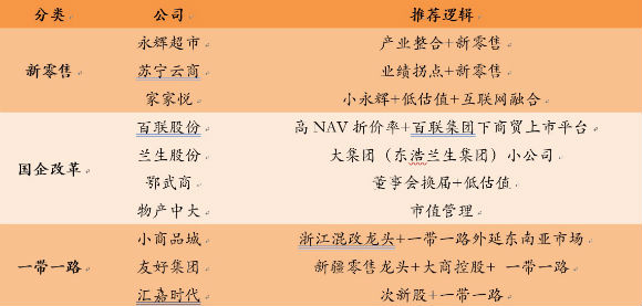国企改革或成为贯穿2017的年度主线,一带一路主题将对贸易企业或西部区域商业产生联动效应;同时低估值高重估价值也将催生商贸零售板块性行情。