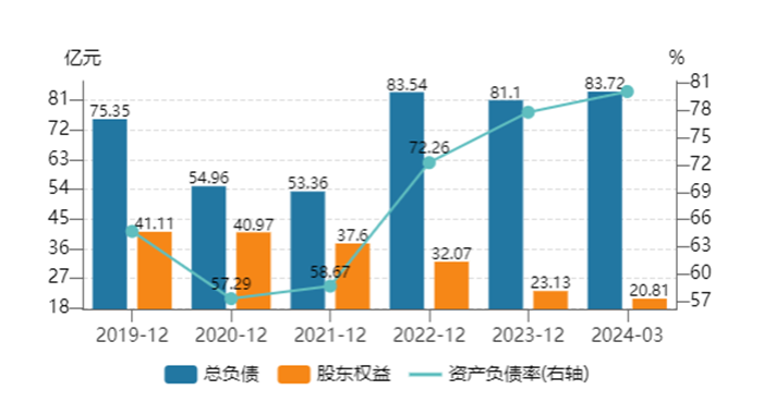 财报显示:2023年实现营收46.62亿元,同比减少30.32%,净亏损8.26亿元;2024年一季度营收6.34亿元,同比大幅减少49%,净亏损2.13亿元,上年同期为盈利0.33亿元。2021年至2023年的3年,ST爱康连续亏损。