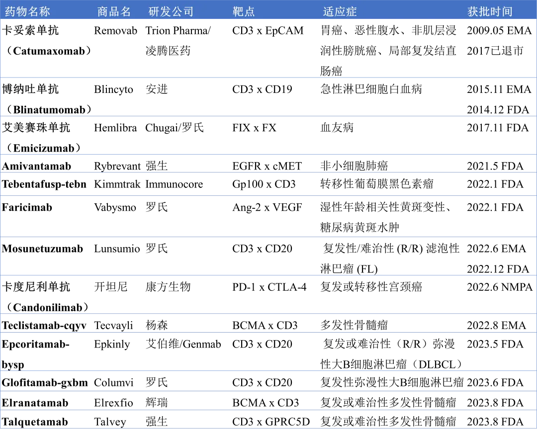 据统计,目前全球已获批13款双抗药物,从2022年1月到2023年9月就获批了9款药物。