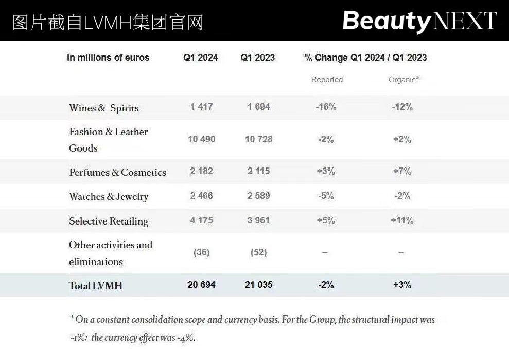 从业务来看,香水与美妆、精品零售成为LVMH集团2024年一季度拉动增长的两大业务。
