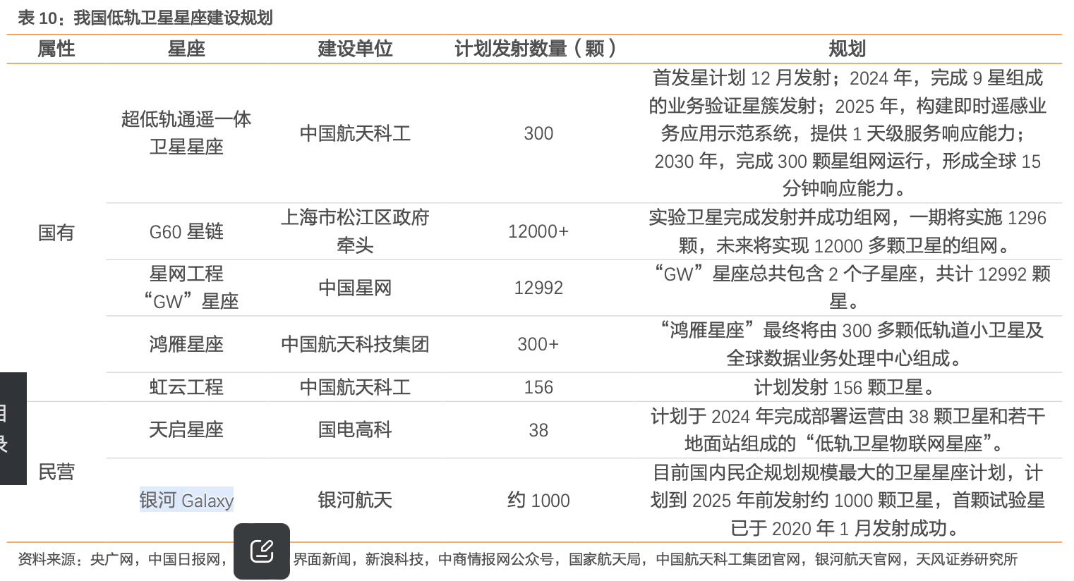 2020年,国家发改委首次明确了“新基建”范围,将卫星互联网纳入通信网络基础设施的范围。中国卫星网络集团承担的“GW”星座计划和垣信卫星承担的G60星链,是中国最大的两个低轨宽带卫星项目。