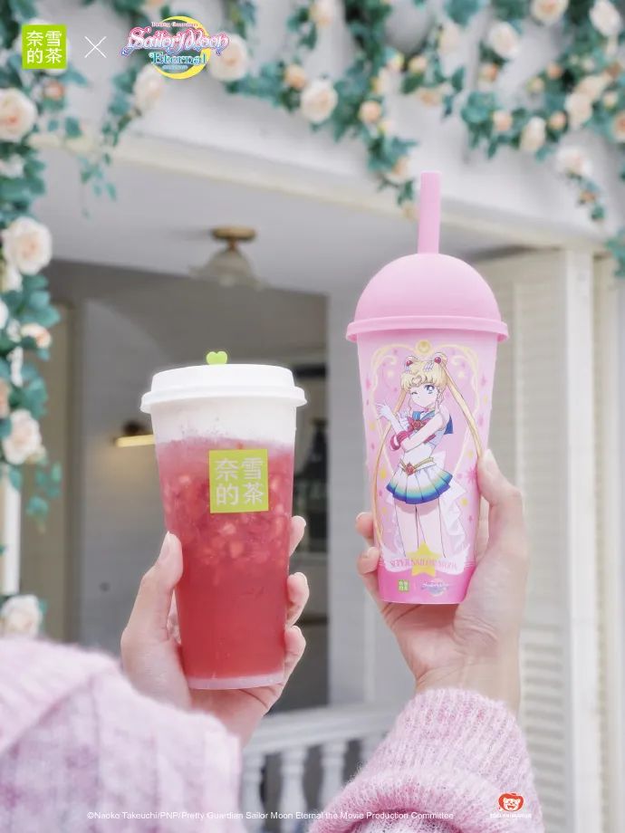 从最近动作看,仍不乏“白富美”的意味。比如,联合“美少女战士”IP,推出联名霸气鲜果茶,推介时强调“喝霸气鲜果茶,变身霸气美少女”。
