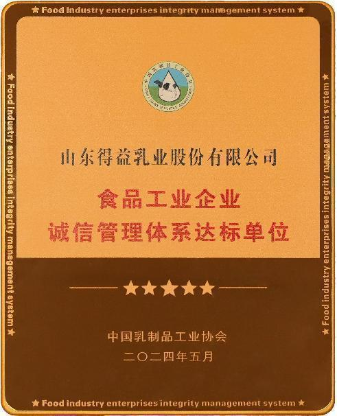 5月28日,中国乳制品工业协会第三十次年会正式开幕。会上,得益乳业累计斩获五项荣誉。得益乳业凭借过硬的产品质量,被授予“食品工业企业诚信管理体系达标单位”的荣誉,充分彰显了得益乳业在品质管理方面的领先地位,是名副其实的中国奶业质量标杆。