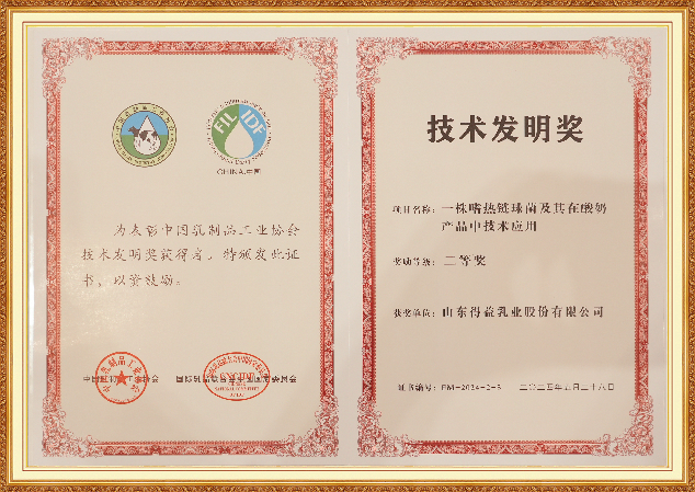 在技术创新方面,得益乳业荣获“2024乳业科技创新企业”荣誉;“一株嗜热链球菌及其在酸奶产品中技术应用”项目获得技术发明奖二等奖;“免疫功能益生菌开发关键技术及在发酵乳中的应用 ”项目获得技术进步奖二等奖;得益乳业技术开发关键人才荣获“乳业优秀青年科技工作者”称号。这些荣誉充分展示了得益乳业在技术创新和产品升级方面的卓越实力和深厚底蕴。得益乳业将坚持以技术创新为驱动、以产品升级为抓手,为消费者提供真正的鲜活营养好牛奶。