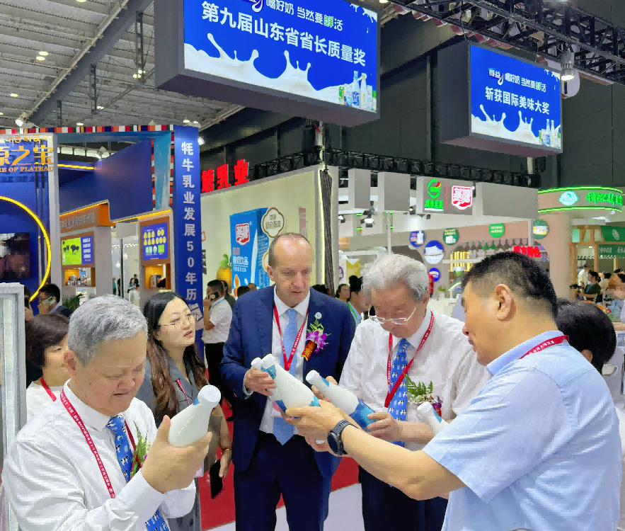 5月27日上午,中国乳制品工业协会理事长吴秋林携副理事长及常务理事一行莅临得益乳业展台巡展。在得益乳业董事长王培亮的介绍下,全面了解得益乳业的全产业链建设情况、创新技术以及数字化转型的最新成果。国际乳品联合会中国国家委员会名誉主席宋昆冈赞扬:“得益产品在中国应该是最好的产品之一”。中国乳制品工业协会理事长吴秋林表示:“企业去过很多次,对得益整个企业倡导的精神印象深刻,对得益的产品很放心”,充分肯定了得益乳业在奶源建设、乳制品加工及产品品控等方面的工作。中国乳制品工业协会常务副理事长兼秘书长刘美菊表示:“得益乳业的产品技术领先行业”。中国乳制品工业协会副理事长兼常务副秘书长刘超赞扬:“得益乳业是我国乳制品行业骨干企业,也是我国乳制品企业里面的光辉旗帜”。国际乳品联合会主席Piercristiano Brazzale品尝得益鲜境鲜牛奶后表示:“I recommend to drink.It is very good very healthy.”(我建议大家饮用,因为它非常地好而且非常的健康)。这些赞誉不仅是对得益乳业产品品质的肯定,更是对得益乳业在推动乳制品行业技术进步和创新发展方面的认可。
