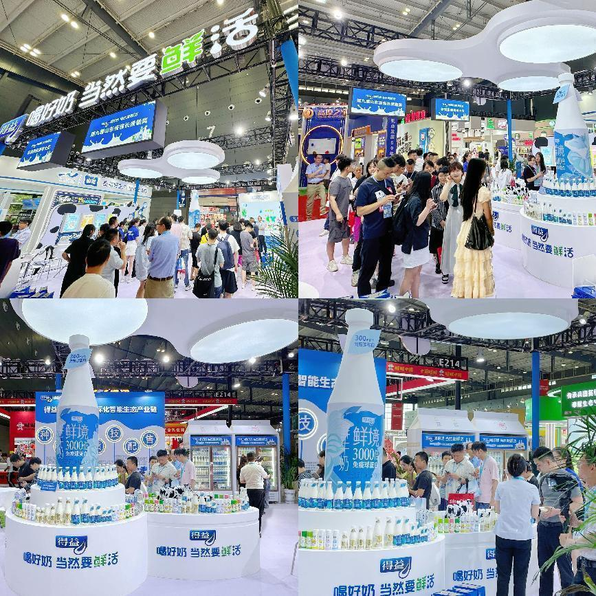 展览期间,得益乳业展厅以其标志性的蓝白色调脱颖而出,简约大气,吸引着众多观展者目光。展览期间,得益乳业将行业标杆产品进行展示分享,累计接待近5000余人,收获好评满满。