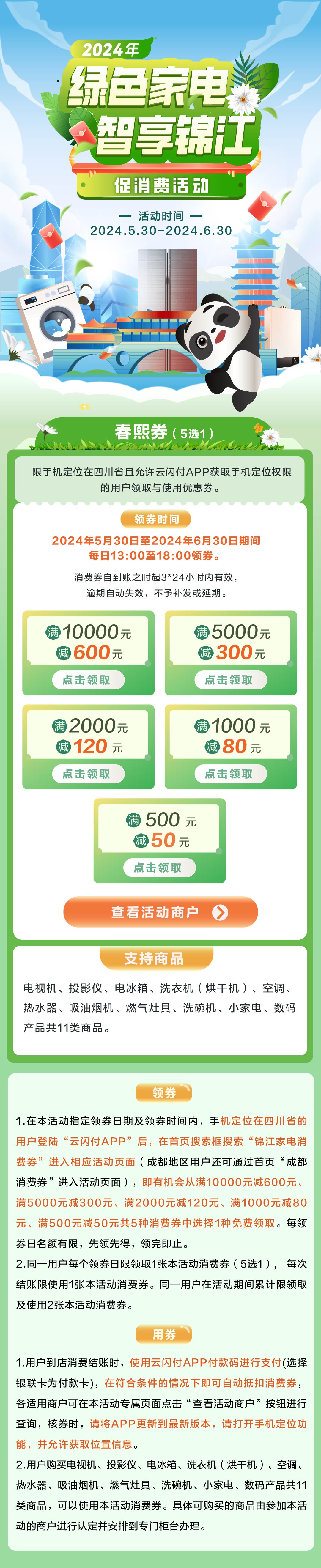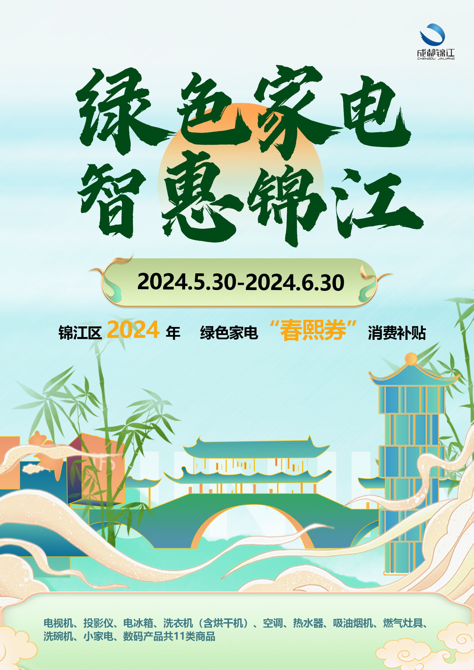5月30日,2024年“绿色家电·智惠锦江”促消费活动将正式启动,累计发放200万元“春熙券”。
