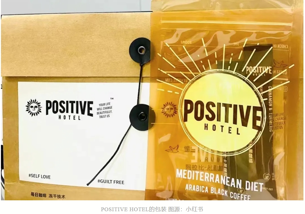 这个思路对应到POSITIVE HOTEL上,那就是把杯子换成了袋子,去掉植脂末,主打保健的功能性。
