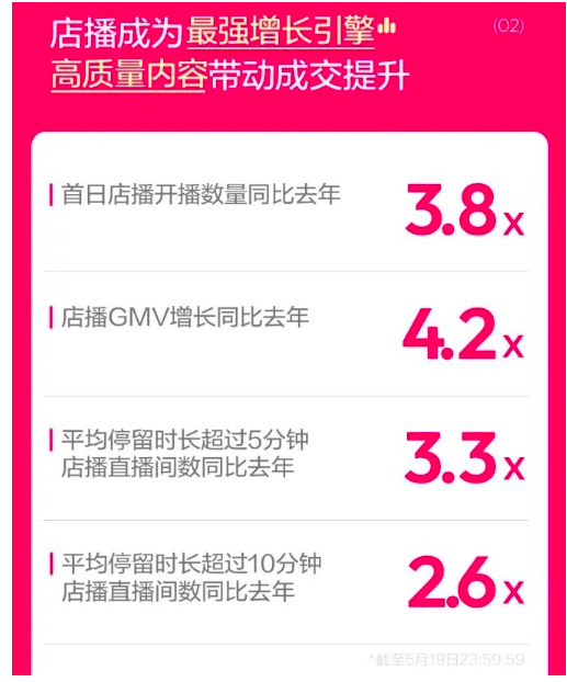 其次,店播已经成为产品销量爆发的加速器,所以各大平台鼓励扶持也在情理之中。阿里妈妈公布的数据显示,直播为淘宝天猫商家带来的生意增量是平均水平的7-11倍。店播还对品牌新品打造的效益带来显著提升,新品上架100天内,直播新品较非直播新品的GMV平均高4亿。