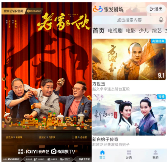 在此背景下,长视频平台也更加重视对老年观众的服务。除了优酷的银发剧场,在上个月的爱奇艺世界·大会上,龚宇提到加强“一老一小”人群服务,提出要通过产品设计、业务流程等提升适老化,并发布了几部老年题材剧集项目。