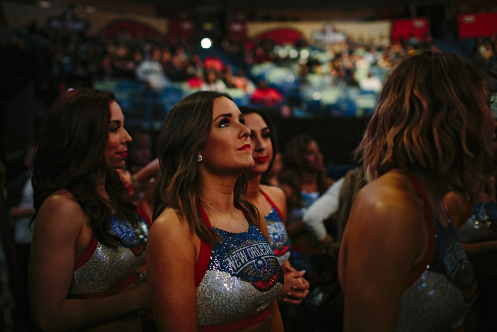 新奥尔良鹈鹕队的啦啦队打扮艳丽,静候出场表演。