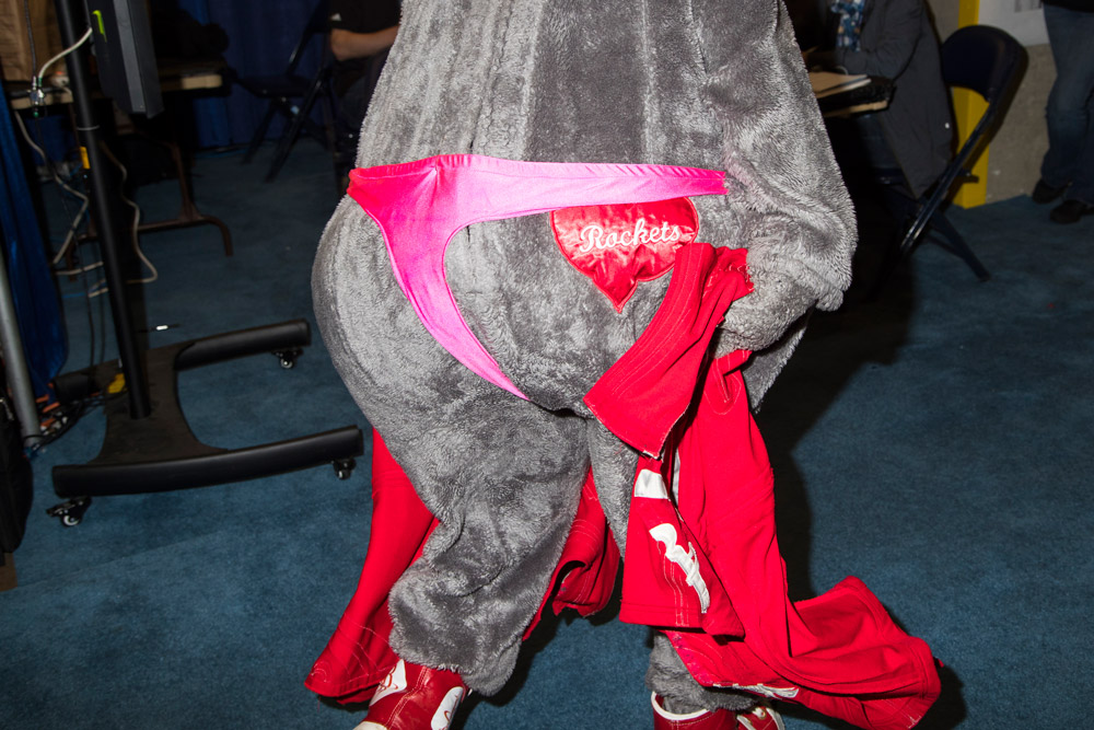 休斯敦火箭队的吉祥物火箭熊,这天同样打扮“妖娆”。