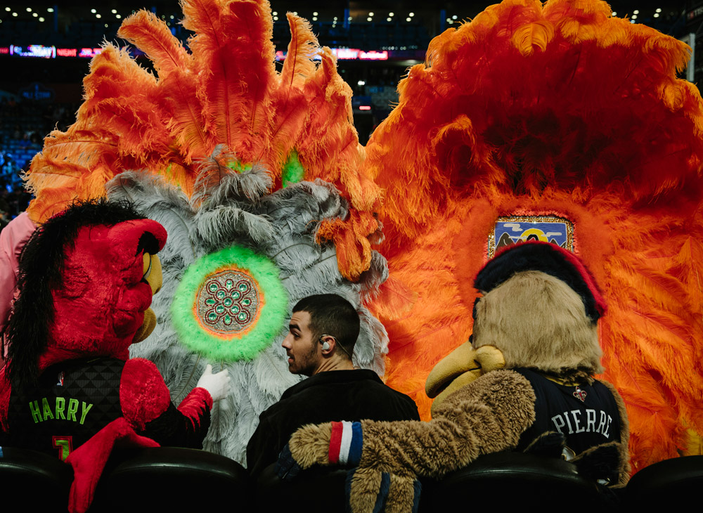 理查德·富兰克林,一位来自亚特兰大的球迷光临新奥尔良,他身穿色彩亮眼的袜子和帆布鞋,搭配着全明星篮球裤。