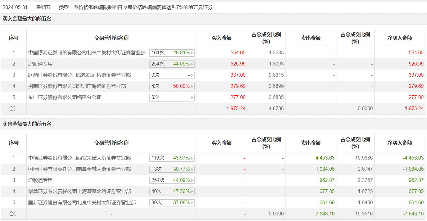 怡球资源5月31日跌8.87%,龙虎榜数据显示,上榜营业部席位全天成交9818.34万元,占当日总成交金额比例为24.23%。其中,买入金额为1975.24万元,卖出金额为7843.1万元,合计净卖出5867.86万元。