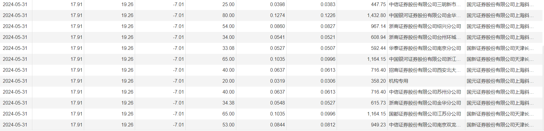 河钢资源5月31日大宗交易成交1305.46万股,成交额2.34亿元,占当日总成交额的55.81%,成交价17.91元,较市场收盘价19.26元折价7.01%。
