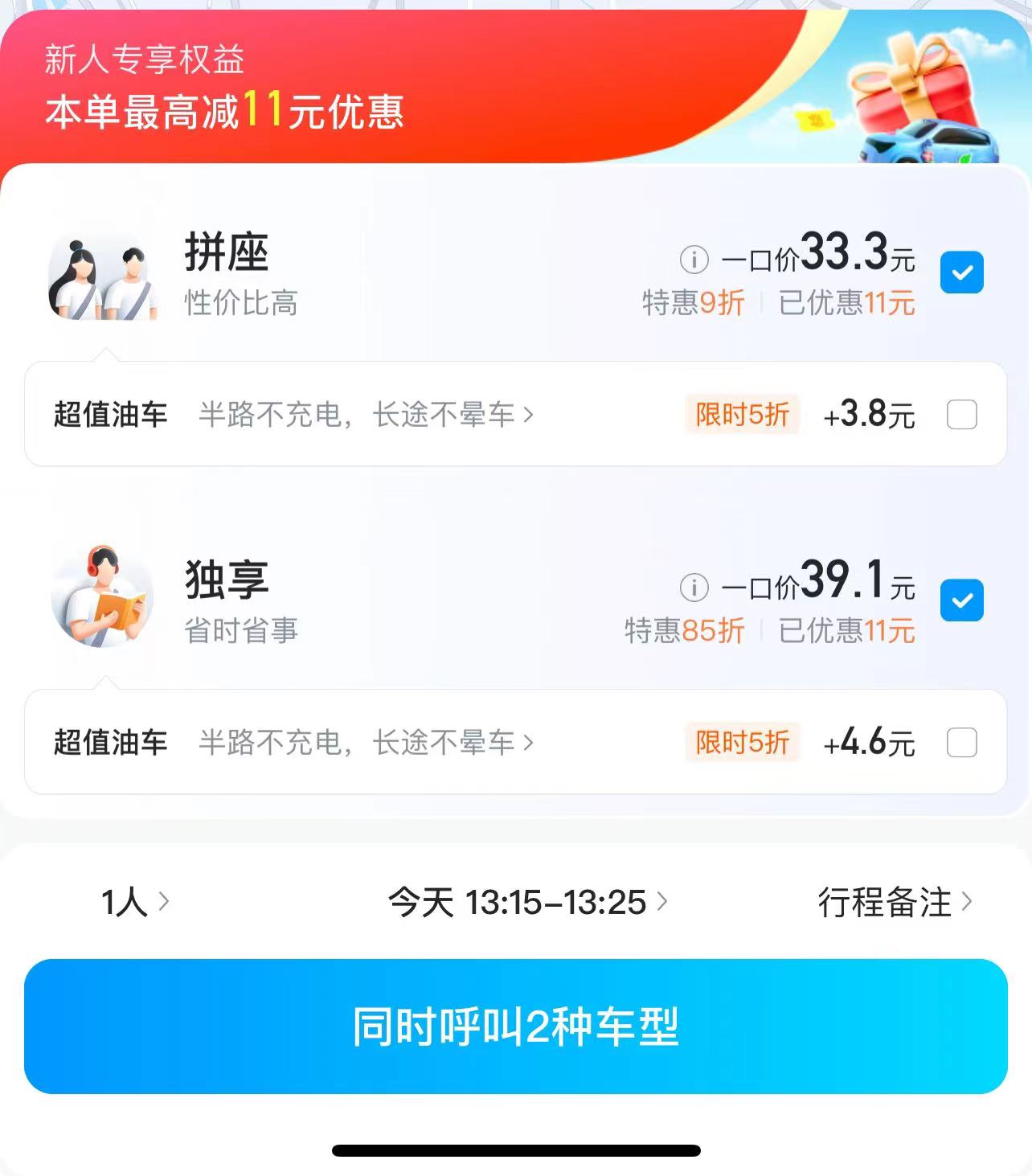 事实上,除哈啰顺风车近两个月刚刚开启优选油车的功能外,滴滴出行也设置了可选车型的功能,遗憾的是此功能仅限豪华车定制服务。