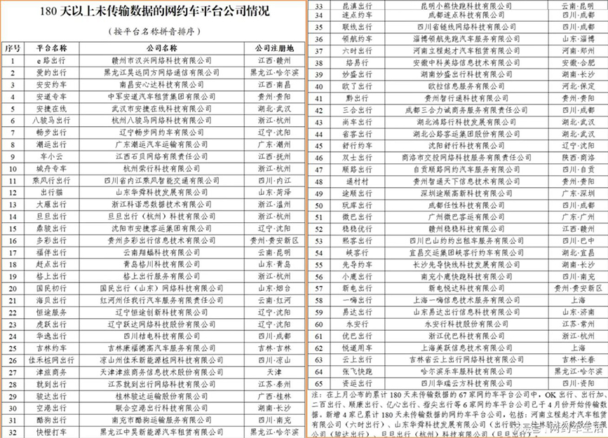 根据网约车监管信息交互系统统计,截至2024年4月30日,全国共有349家网约车平台公司取得网约车平台经营许可,环比增加4家。其中,有65家累计超180天未向监管部门传输数据。