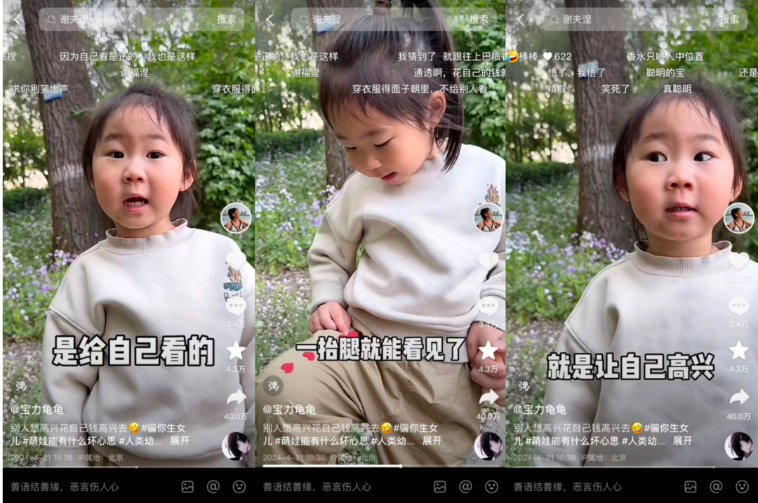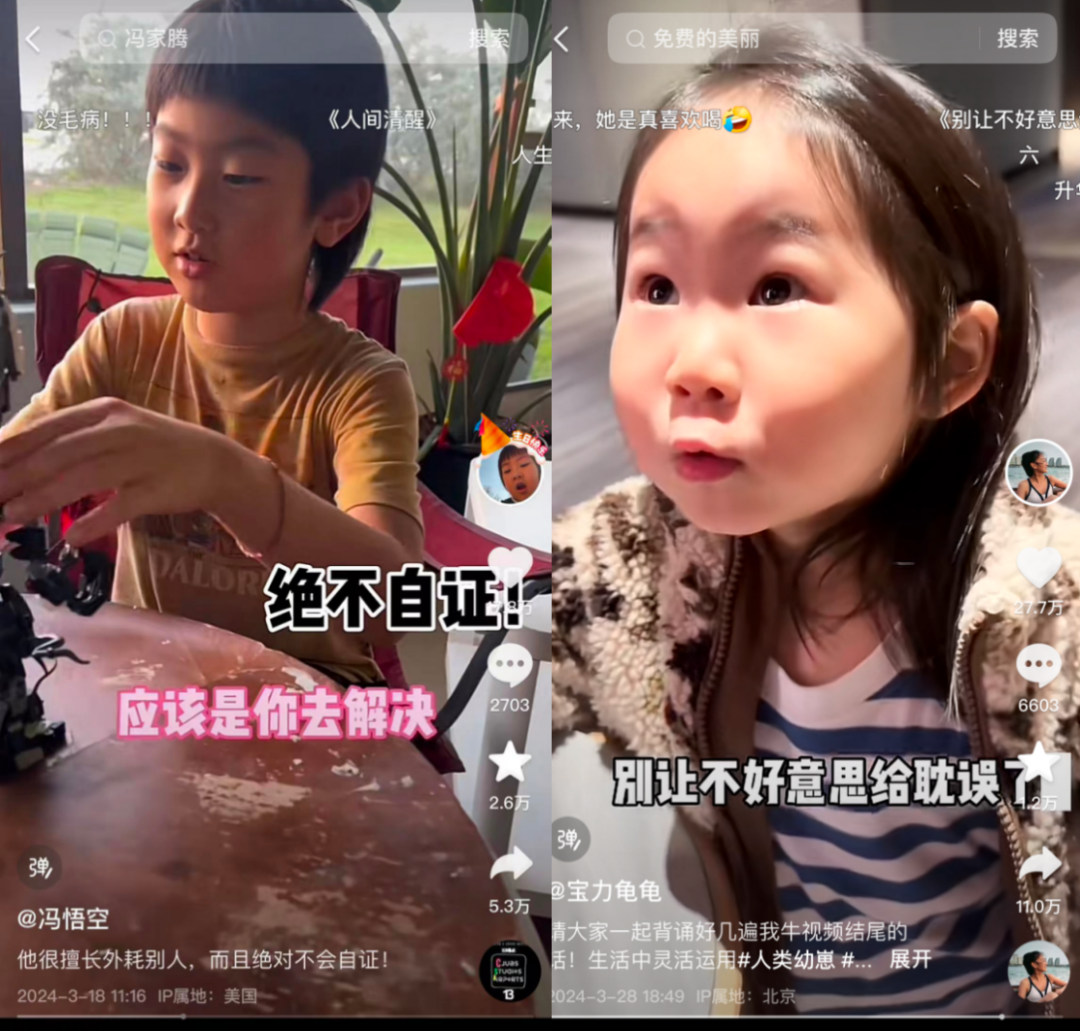 陈凯的团队做过对比。他们让一个成年人和一个小孩子说几乎相同的文案,前者的作品互动量寥寥无几,后者的作品则被推成了转发过万的小爆款。