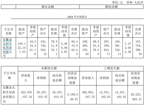 从金太阳药业近两年的财务情况来看,截至2023年末,金太阳的资产共计2.43亿元,负债共8441.10万元。