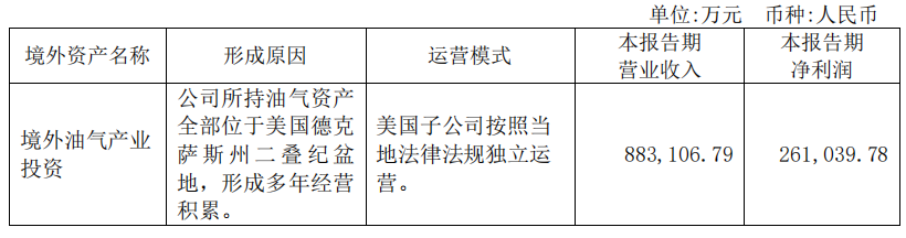 此后,新潮能源又接连在美国并购了多处油气资产。境外油气资产开采与销售也成为新潮能源主要收入来源。
