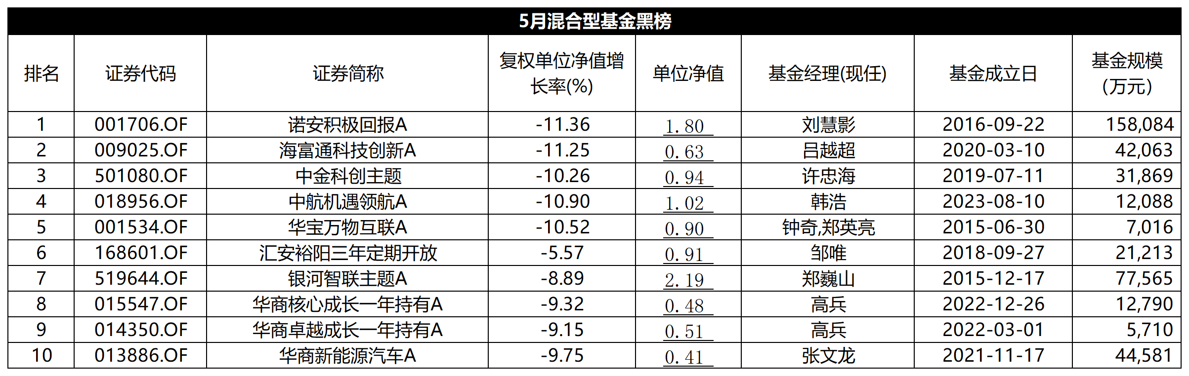 排在黑榜第一位的是诺安积极回报,该基金5月份回报率为-11.36%,而在今年一季度,该基金凭借重仓AI板块获得了24.65%的收益,在市场同类产品中排名第一。