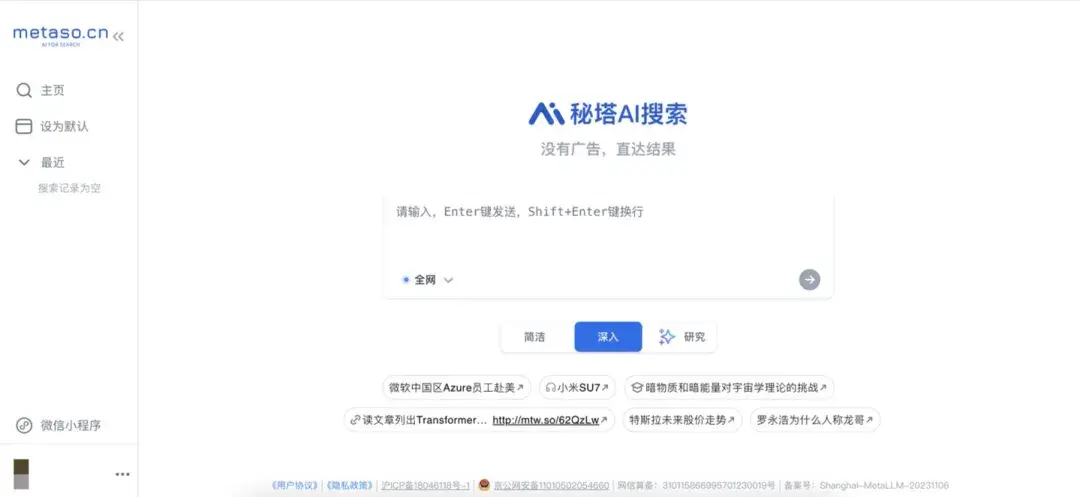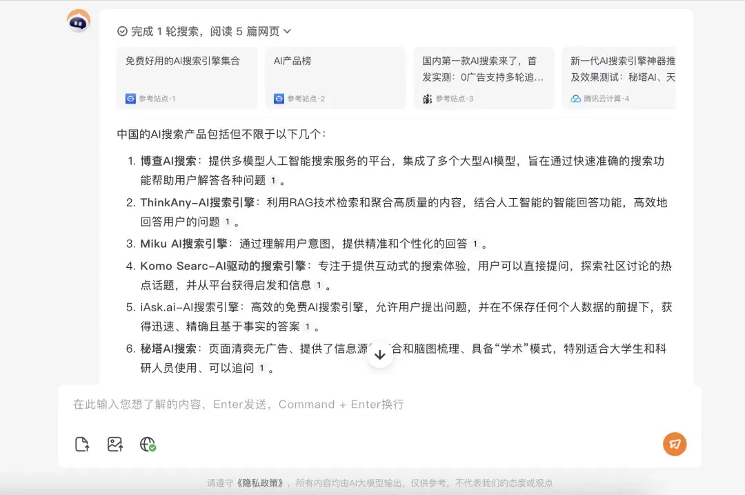抄的最像的是秘塔搜索。不止是在UI设计上对Perplexity的照搬,也“抄”到了它的灵魂,体现了一种“中国式高效”。