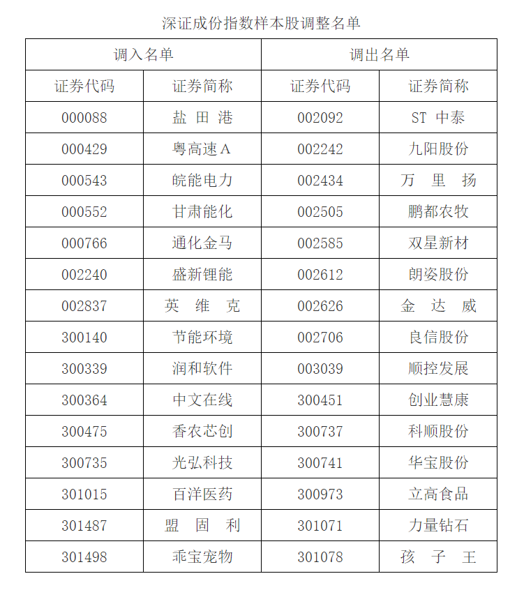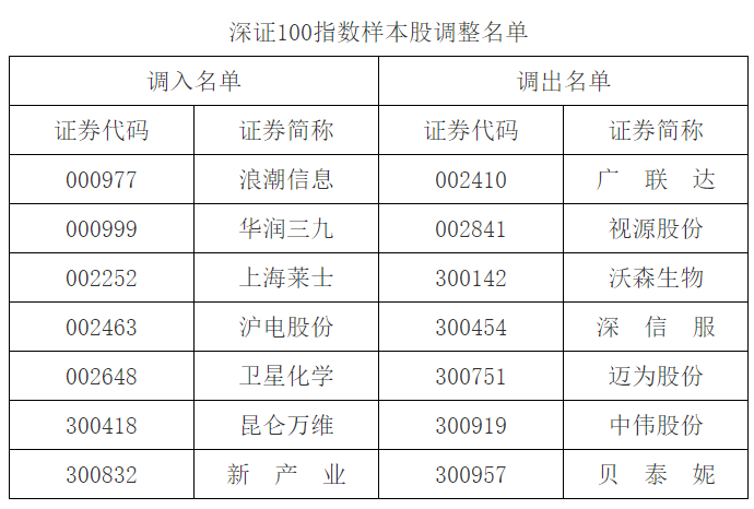 6月3日消息,深交所公告,根据指数编制规则,深圳证券交易所和深圳证券信息有限公司决定于6月17日对深证成指、创业板指、深证100等指数实施样本股定期调整。