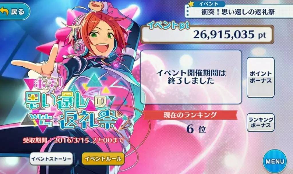 希空:《偶像梦幻祭》的“返礼祭”活动课了16万日元(约合人民币9632元)。这个金额是活动10天中9天没有特攻卡也能进前十的证明(笑)。