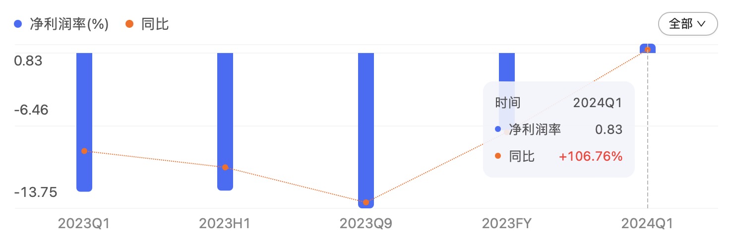 图/赛力斯2024 Q1财报-净利润率 来源/百度股市通