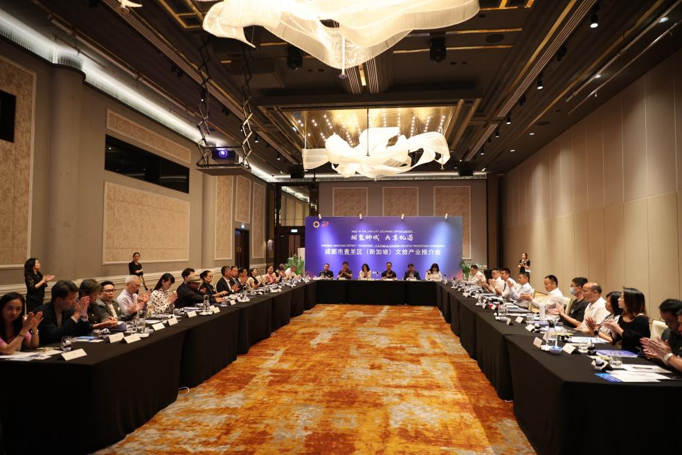 5月31日,成都市青羊区“相聚狮城 共享机遇”文旅产业推介会在新加坡举行。中国驻新加坡旅游办事处、新加坡中华总商会、新中经贸科技文教交流协会、智慧控股集团、爱妮娜控股国际集团、尧泰汉海文旅公司、友联书局等30余家机构和企业受邀参加。青羊区委副书记刘怒海出席。