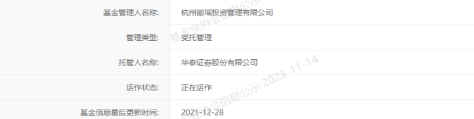 另一家私募机构杭州瑜瑶,2017年6月成立,根据企查查信息显示,该公司由2名自然人股东持股,杨泽斌是其大股东,持股82%,何国清持股18%,这家公司实缴资本200万元,管理着规模20亿-50亿元的资金,公司目前状态为经营异常。
