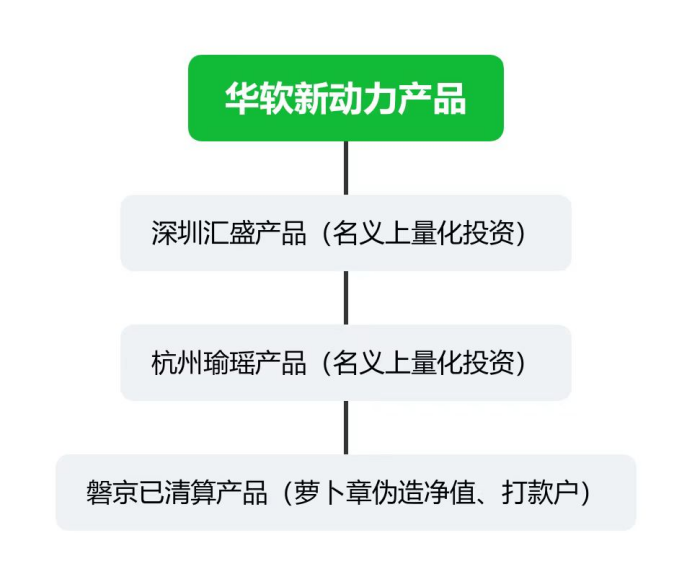 最初,华软新动力将资金投进汇盛私募,后来汇盛私募又把钱投到了“杭州瑜瑶”,最后又投给磐石这家量化私募机构。值得注意的是,经过多层嵌套,最终穿透到一只没有托管人的私募产品上。当最底层的机构跑路,才东窗事发。