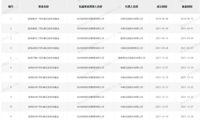 但从基金业协会备案信息看,杭州瑜瑶11只运作的产品,托管人为华泰证券。
