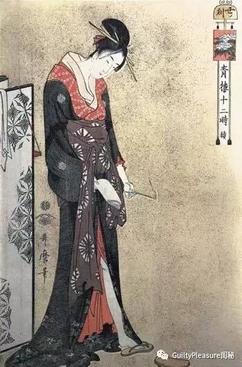 张爱玲曾这样描写过一副吉原游女图:“深宵的女人换上家用的木屐,一只手握着一炷香,香头飘出细细的烟。她立在那里,像是太高,低垂的颈子太细,太长,还没踏到木屐上的小白脚又小得不适合,然而她确实知道她是被爱着的,虽然那时候只有她一个人在那里。因为心定,夜显得更静了,也更悠久。”