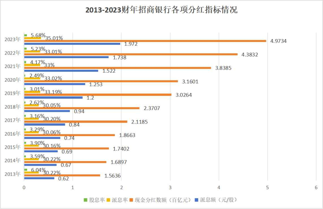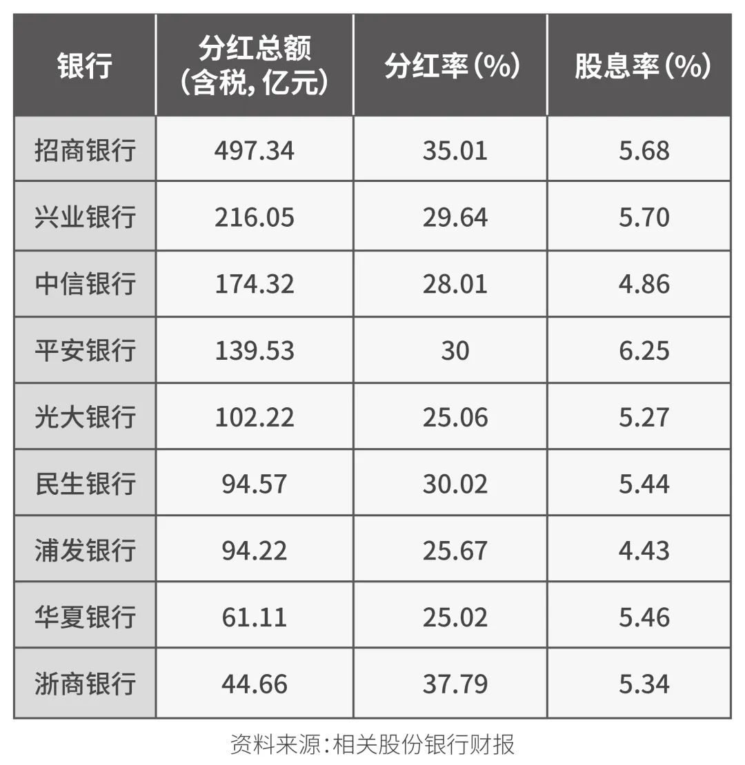 2023年招行的拟分红总额为497.34亿元,居各家股份行之首。不过从分红率、股息率方面来看,招行还有一定的进步空间。