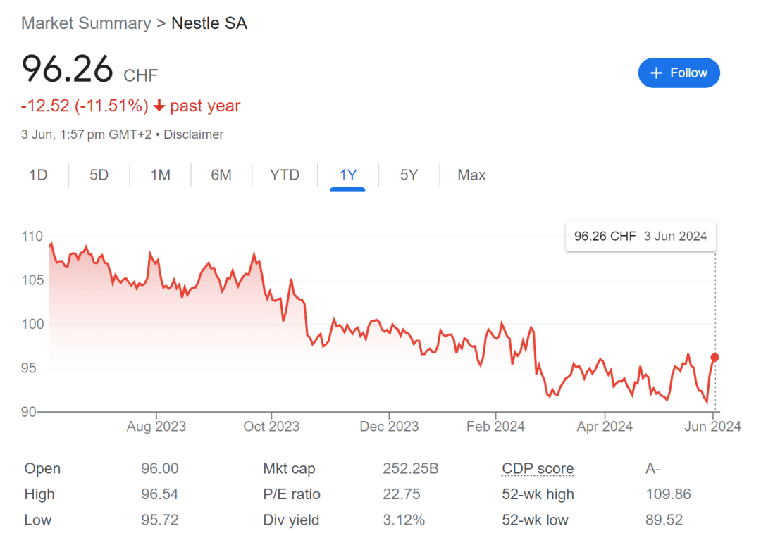 尽管释放了RIG将在二季度“转正”等积极信号,但资本市场似乎仍显得信心不足。小食代留意到,在过去一年里,雀巢的股票下跌了超过11%。