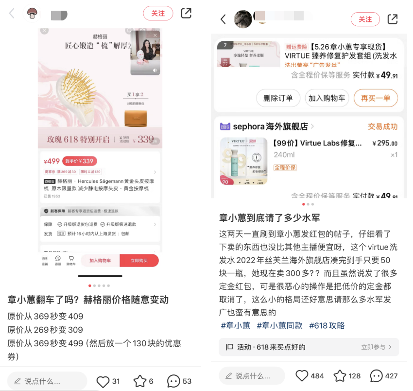 直播结束后,网上最先出现的是“割韭菜”“淘宝直播翻车”的负面声音。