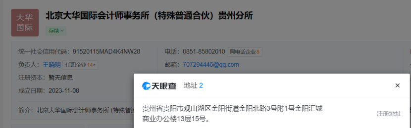 另外,债市观察还注意到,大华所和北京大华国际的几家分所注册地址重合。天眼查显示,大华贵州分所和北京大华国际贵州分所的注册地址是贵阳市观山湖区金阳汇城商业办公楼的同一层;大华江西分所与北京大华国际江西分所的注册地址一致;大华浙江分所和大华国际杭州分所的注册地址都在杭州市上城区瑞凯水湘大厦。